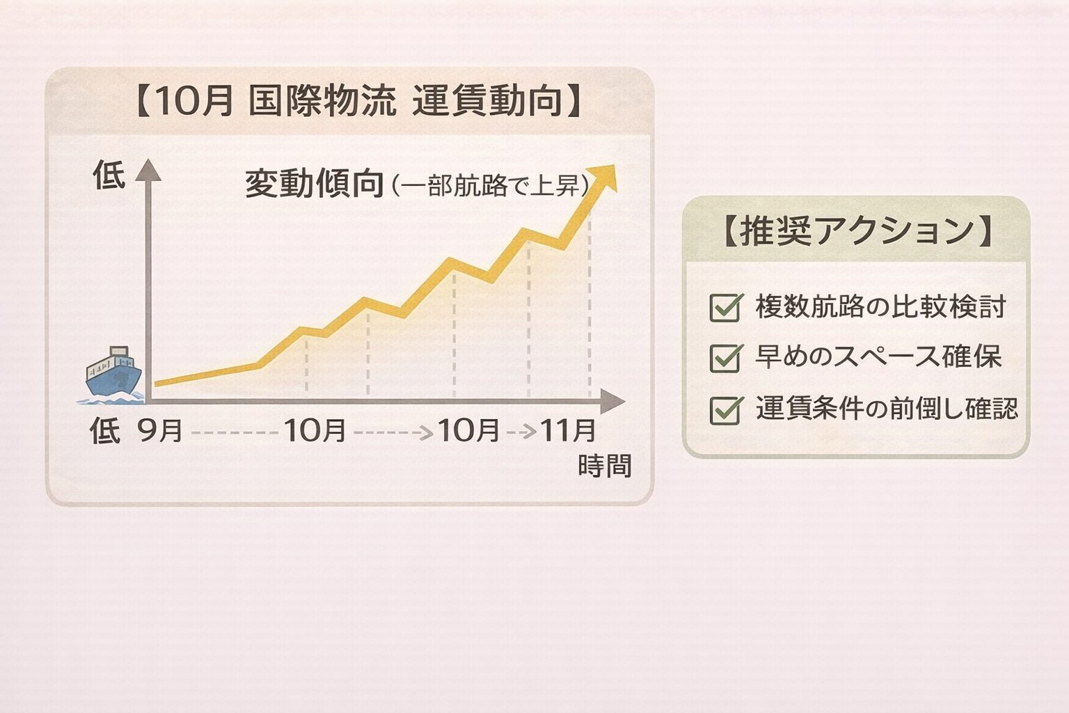 2025年10月の国際物流市場では、主要船会社による FAK運賃の引き上げや、11月以降を見据えた価格改定(GRI)の発 […]